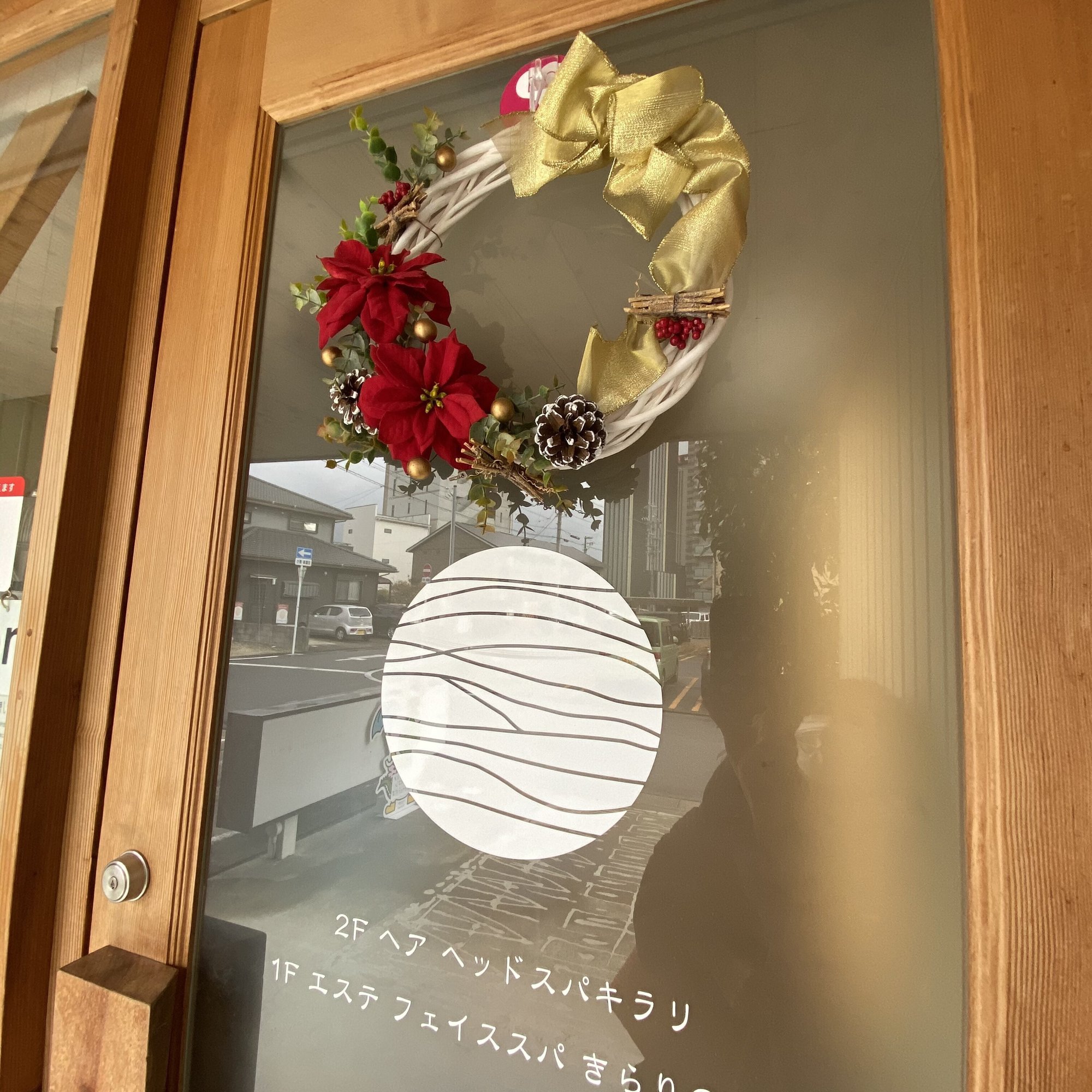 こちら、ある年のクリスマス前の、当サロンの入口ドアです〜。