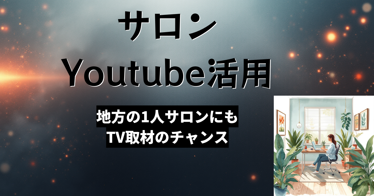 1人サロンでも月商100万円超えを実現する、実践的なノウハウをお届けしています。Youtubeは、地方の1人サロンにも全国放送のチャンスをもたらします。